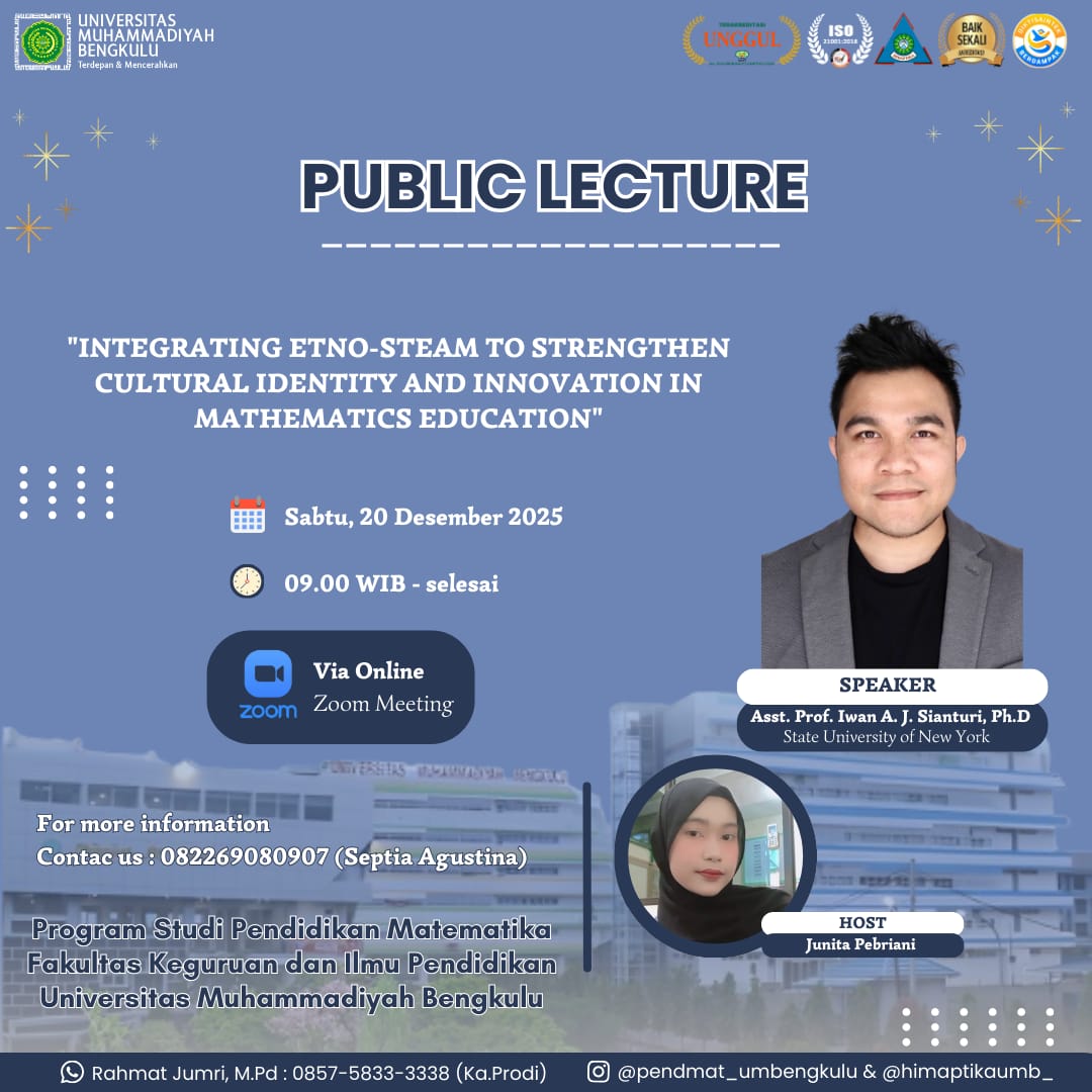 Selamat datang di website Program Studi Pendidikan Matematika Universitas Muhammadiyah Bengkulu! Pada, 18 Desember 2025, Program Studi Pendidikan Matematika mengundang seluruh mahasiswa, dosen, dan civitas akademika untuk mengikuti Kuliah Umum…