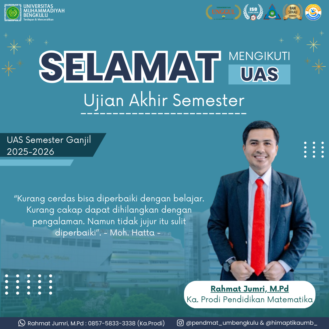 Selamat datang di website Program Studi Pendidikan Matematika Universitas Muhammadiyah Bengkulu!