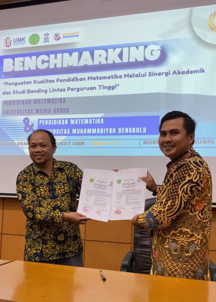 Pada, 10 Februari 2026 – Program Studi Pendidikan Matematika FKIP Universitas Muhammadiyah Bengkulu melaksanakan kegiatan benchmarking ke Universitas Muria Kudus. Kegiatan ini mengusung tema “Penguatan Kualitas Pendidikan Matematika melalui Sinergi Akademik dan Studi Lintas Perguruan Tinggi” sebagai upaya strategis dalam meningkatkan mutu penyelenggaraan pendidikan dan tata kelola program studi.
