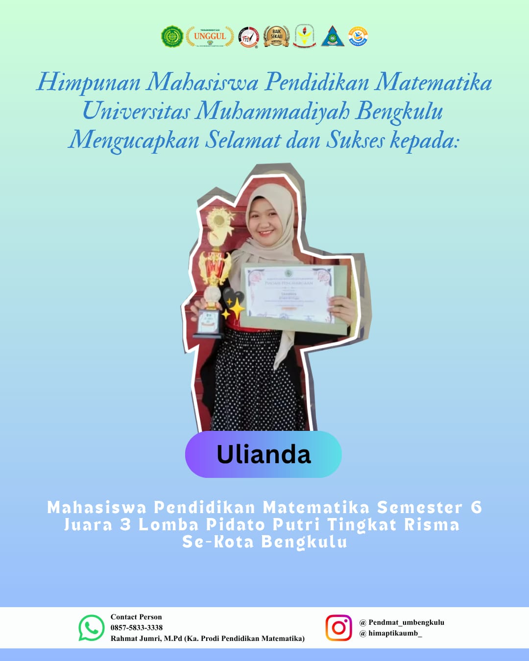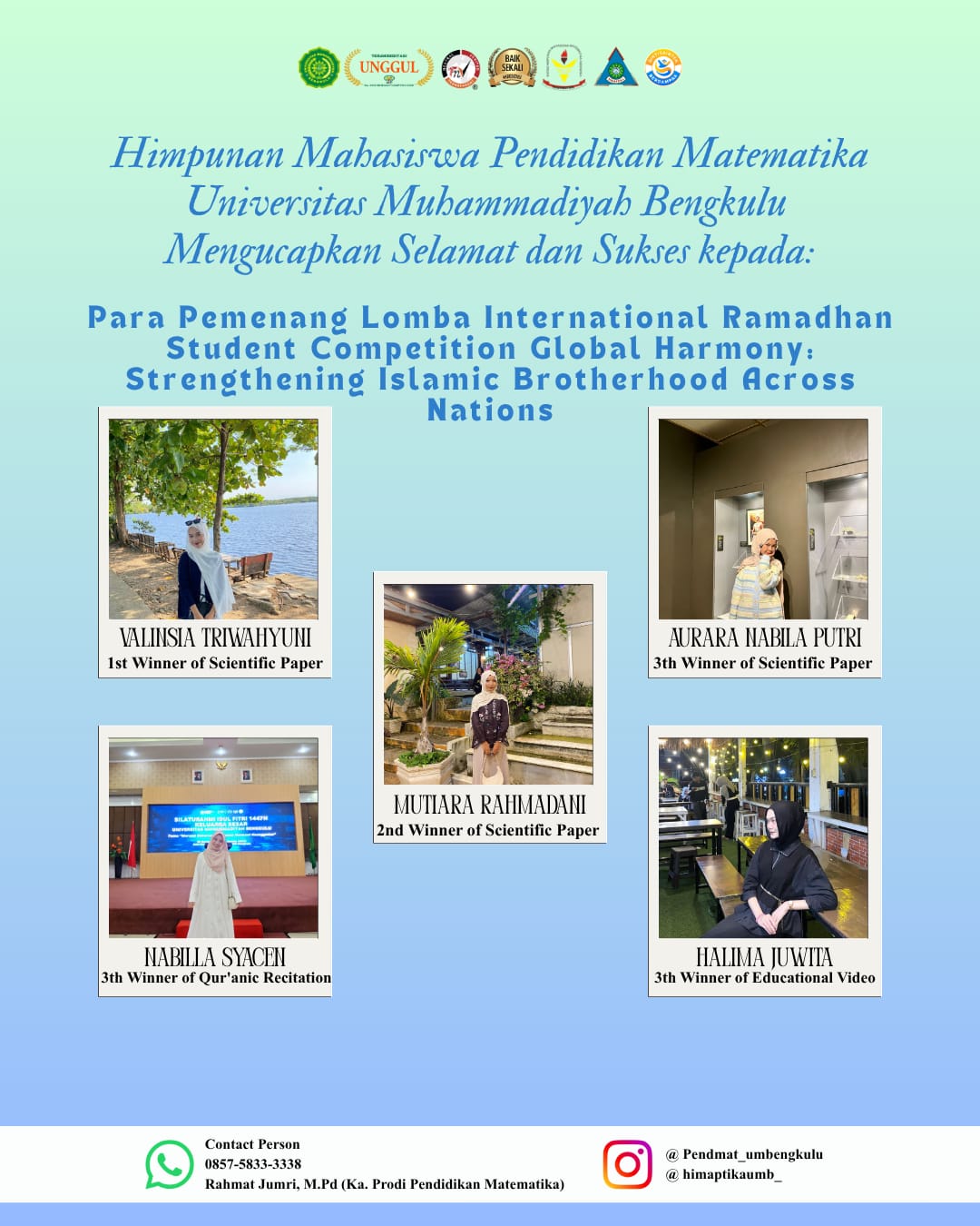 Selamat datang di website Program Studi Pendidikan Matematika Universitas Muhammadiyah Bengkulu! Pada, 10 April 2026,  Sebuah prestasi membanggakan kembali beberapa mahasiswa program studi Pendidikan Matematika Universitas Muhammadiyah Bengkulu berhasil lolos…