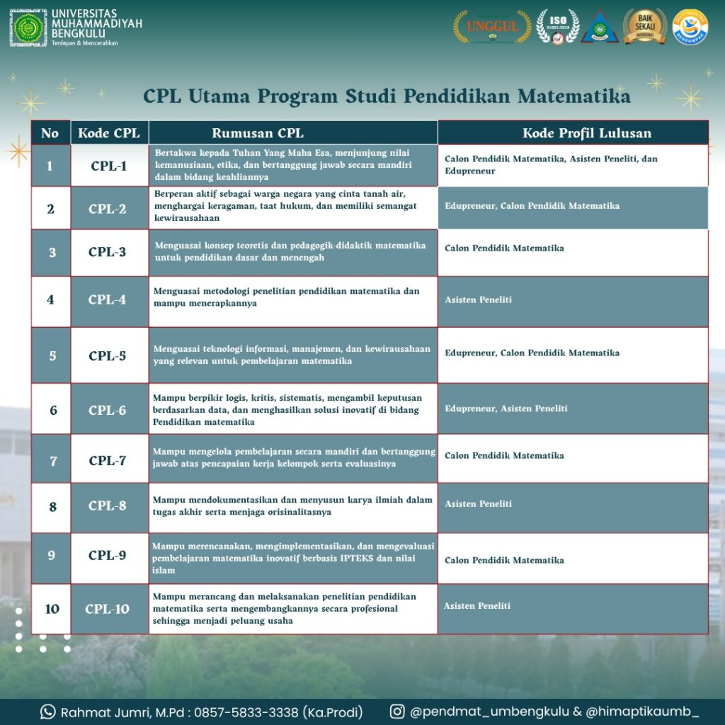 CPL UTAMA PROGRAM STUDI PENDIDIKAN MATEMATIKA
